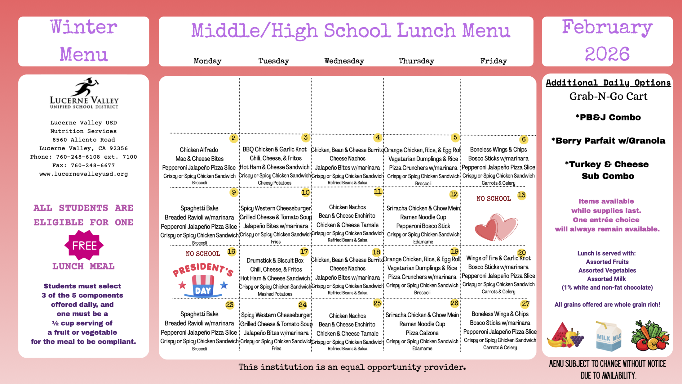 Middle/High Menus